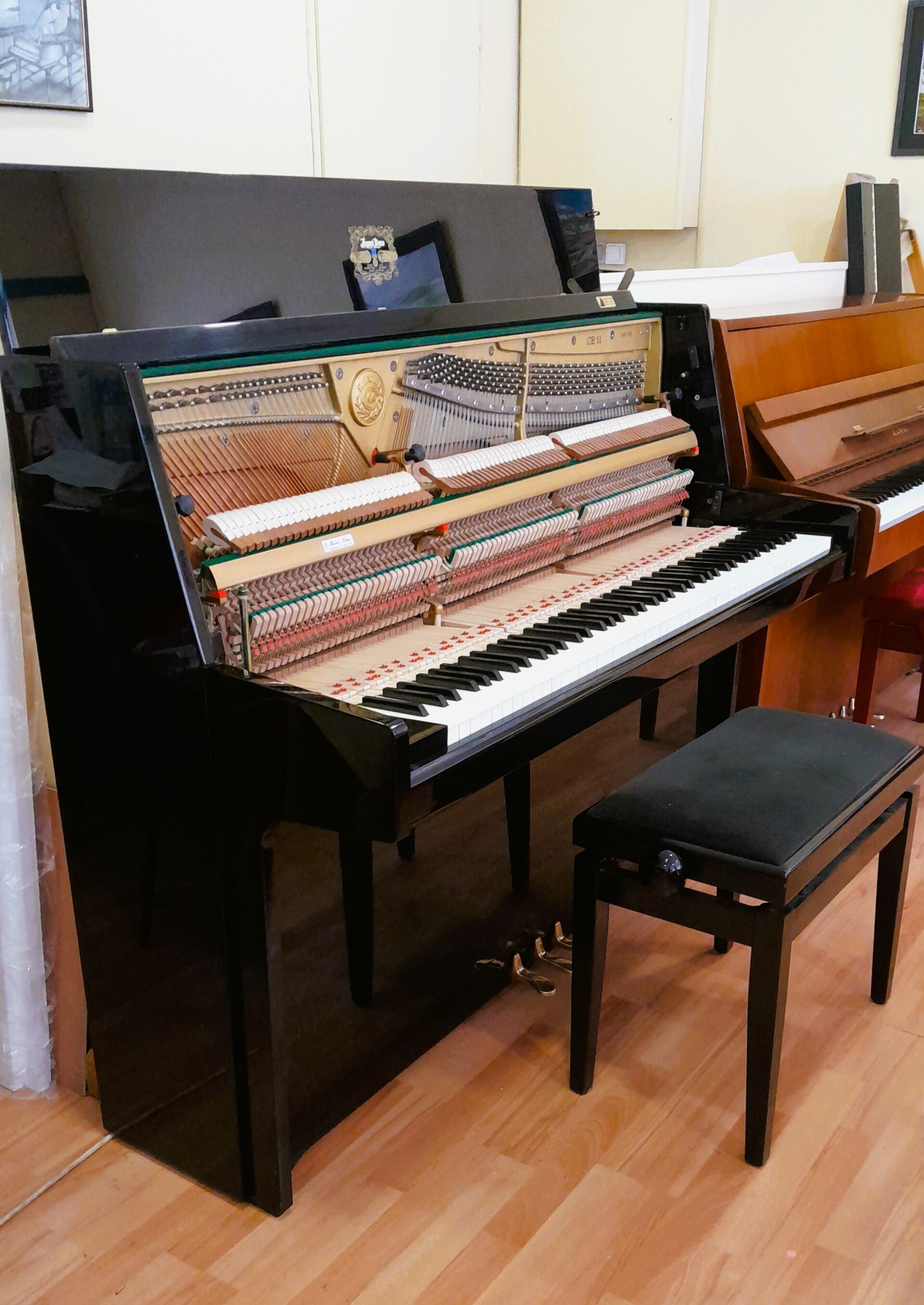 Ce piano droit d'occasion de marque Kawaï modèle CE11 noir brillant, fabriqué au Japon, est un très bon instrument d'étude pour pianiste de niveau débutant à intermédiaire. Il offre une bonne sonorité bien équilibrée, grâce à ces marteaux en acajou et une table d'harmonie en épicéa massif de très bonne qualité. le toucher est très agréable. C'est un piano très fiable avec un excellent toucher. Révisé, accordé, garantie : cinq ans pièces et main-d'oeuvre.